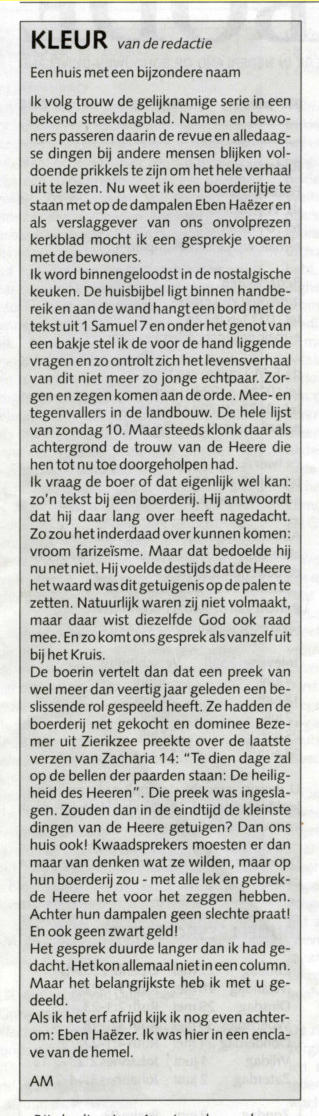 Dat Ds. Bezemer lang bekend is geweest blijkt uit een column van de Kerkbode voor Schouwen-Duiveland: