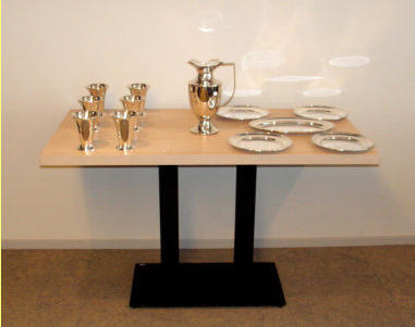 Als afscheidsgeschenk schonk het gezin Van der Klis een nieuw zilveren avondmaals- stel, dat met grote dank werd aanvaard.